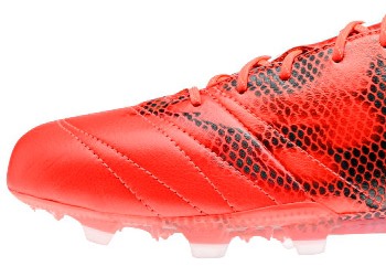Tomaia. Esattamente come tutte le precedenti edizioni, le nuove F50 adiZero sono disponibili in due versioni: una con tomaia in pelle sintetica e una con tomaia mista (pelle sintetica + pelle naturale). Nella versione in pelle sintetica, l’unico materiale che compone la tomaia è l’HybridTouch, che può essere considerata la pelle sintetica Adidas che più si avvicina alle caratteristiche della vera pelle naturale: l'HybridTouch, infatti, è una pelle sintetica abbastanza morbida e flessibile e che garantisce una sensibilità nel contatto col pallone più che buona, anche per via del suo spessore abbastanza ridotto. E' necessario precisare, comunque, che nella precedente edizione delle F50 adiZero la pelle HybridTouch componeva solo la parte anteriore della tomaia, mentre la parte posteriore era realizzata in SpeedFoil, un materiale particolarmente leggero, simile, al tatto, alle vele delle imbarcazioni. Non a caso, le vecchie F50 adiZero pesavano solamente 150 grammi. Queste nuove F50 adiZero, invece, pesano nettamente di più (198 grammi, per l'esattezza), Un’altra differenza importante rispetto alla vecchia edizione delle F50 adiZero, è l’aspetto esteriore della tomaia: come chiaramente visibile dalle foto, infatti, le nuove F50 adiZero presentano una superficie ruvida in stile pelle di serpente. Questa tecnologia (denominata DribbleTex), permette di migliorare il grip col pallone in fase di controllo o dribbling, e in campo risulta utilissima, soprattutto in caso di pioggia. La tecnologia DribbleTex, in realtà, era stata adottata anche sulle vecchie F50 adiZero, ma i rilievi presentavano una struttura meno accentuata e soprattutto, erano presenti solo sulla parte anteriore della tomaia. Nelle nuove F50 adiZero, invece, tale tecnologia, come appena detto, è stata estesa su tutta la superficie della tomaia, per cui i suoi benefici, adesso, sono percepibili in misura decisamente superiore.