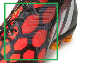 Drive Zone: è quella adiacente alla zona di allacciatura della scarpa, ed costituira da una serie di bande a zig zag. Questa zona è stata studiata per aiutare ad imprimere maggior propulsione ai lanci lunghi, ma risulta utile anche in fase di controllo di palla e per imprimere maggior precisione ai tiri di collo pieno.