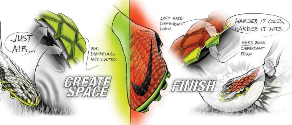 LA NUOVA SUOLA: Grandi cambiamenti sono stati applicati anche alla suola, che prende il nome di Hyper-Reactive e presenta una doppia costruzione (Pebax nell'avampiede e nylon compresso nella parte posteriore). Ad essere ridisegnata è pure la configurazione dei tacchetti, che sono in parte esagonali per agevolare la rotazione negli spazi stretti, e in parte lamellari o "ad artiglio” (come quelli delle Mercurial Superfly V) per garantire una migliore trazione quando si eseguono scatti in velocità.