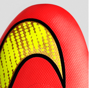 Tomaia. Il materiale utilizzato da Nike per la composizione della tomaia delle Mercurial Vapor X è lo stesso di quello già adoperato, con successo, sui modelli precedenti (la microfibra Teijin). In questo modello, tuttavia, la tomaia è composta da un unico pezzo (ovvero è senza linguetta di allacciatura), e soprattutto, è “tagliata” con uno spessore decisamente inferiore (probabilmente, si tratta della tomaia più sottile, o tra le più sottili, mai realizzate). Internamente, proprio per compensare questo minor spessore e garantire maggior supporto e stabilità al piede, la tomaia presenta, per la prima volta su una Mercurial, una struttura ultra leggera in TPU, del tutto simile alla everFit Cage ideata dalla Puma per alcuni suoi modelli (evoPower ed evoSpeed). Grazie a questo suo minor spessore, la microfibra Teijin delle Mercurial Vapor X appare molto più morbida e flessibile di quanto visto nei precedenti modelli Mercurial, e garantisce, di conseguenza, una vestibilità e una sensibilità nel contatto col pallone davvero straordinari. Da questo punto di vista, si tratta, con ogni probabilità, delle miglior Mercurial Vapor mai realizzate. E’ importante sottolineare, comunque, che la riduzione di spessore a cui è stata sottoposta la microfibra Teijin delle Mercurial Vapor X, produce, ovviamente, anche un abbassamento del livello di protezione del piede: in caso di contrasti molto duri o di pestoni accidentali da parte di un avversario, quindi, il dolore percepito può essere notevole, o comunque, maggiore di quello che viene normalmente percepito indossando una scarpa imbottita. Un’altra modifica importante riguardante la microfibra Teijin di queste nuove Vapor X, è data dal fatto che, mentre nelle Vapor IX essa presentava una superficie in stile “pallina da golf” (ovvero con tante piccole cavità circolari), qui avviene, in un certo qual senso, l’opposto: vi sono cioè, tanti piccoli puntini superficiali, che creano un leggero effetto ruvido, in stile “carta vetrata”. Questa caratteristica (unita alla tecnologia ACC che la Nike applica, ormai da tempo, a tutti i modelli top di gamma), permette di migliorare la frizione col pallone, rendendo più agevole la fase di controllo e i dribbling negli spazi stretti.